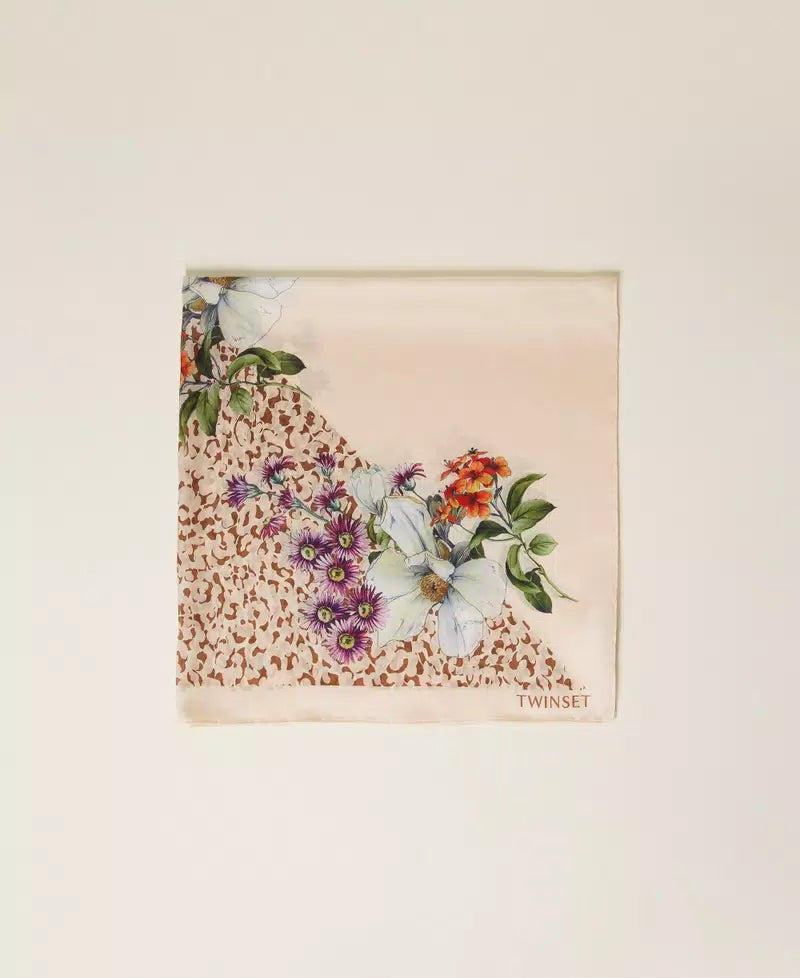 Twinset Floral Print Scarf in  Animal Print/Parchment Beige Flowers