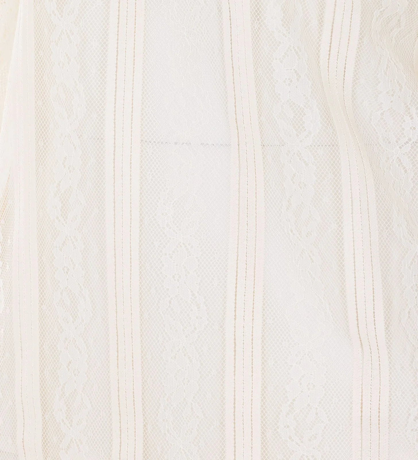 Elevate your wardrobe with this charming lace blouse that's equal parts sophisticated and fun. Vertical stripes dance across delicate lace, perfectly aligned for a polished look. The ruffled collar and short puff sleeves add a playful touch, while the teardrop front opening with button detail keeps things interesting. A built-in cami underneath means you're ready to go straight from closet to calendar.