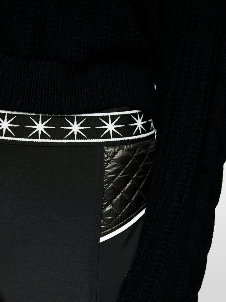 Step into style and comfort with these Marc Cain Flared Pull On Pants in Black. Designed with a playful 7/8 length flare and a feminine fit, they add a chic twist to any outfit. The elasticated waistband keeps things cozy, while the techno stretch fabric lets you move freely—ideal for mixing sporty vibes with elegant flair.
