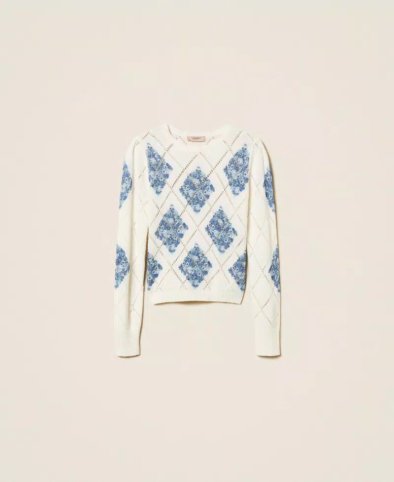 Twinset Diamond Pattern Sweater in Blue Topaz Diamond Floral Print