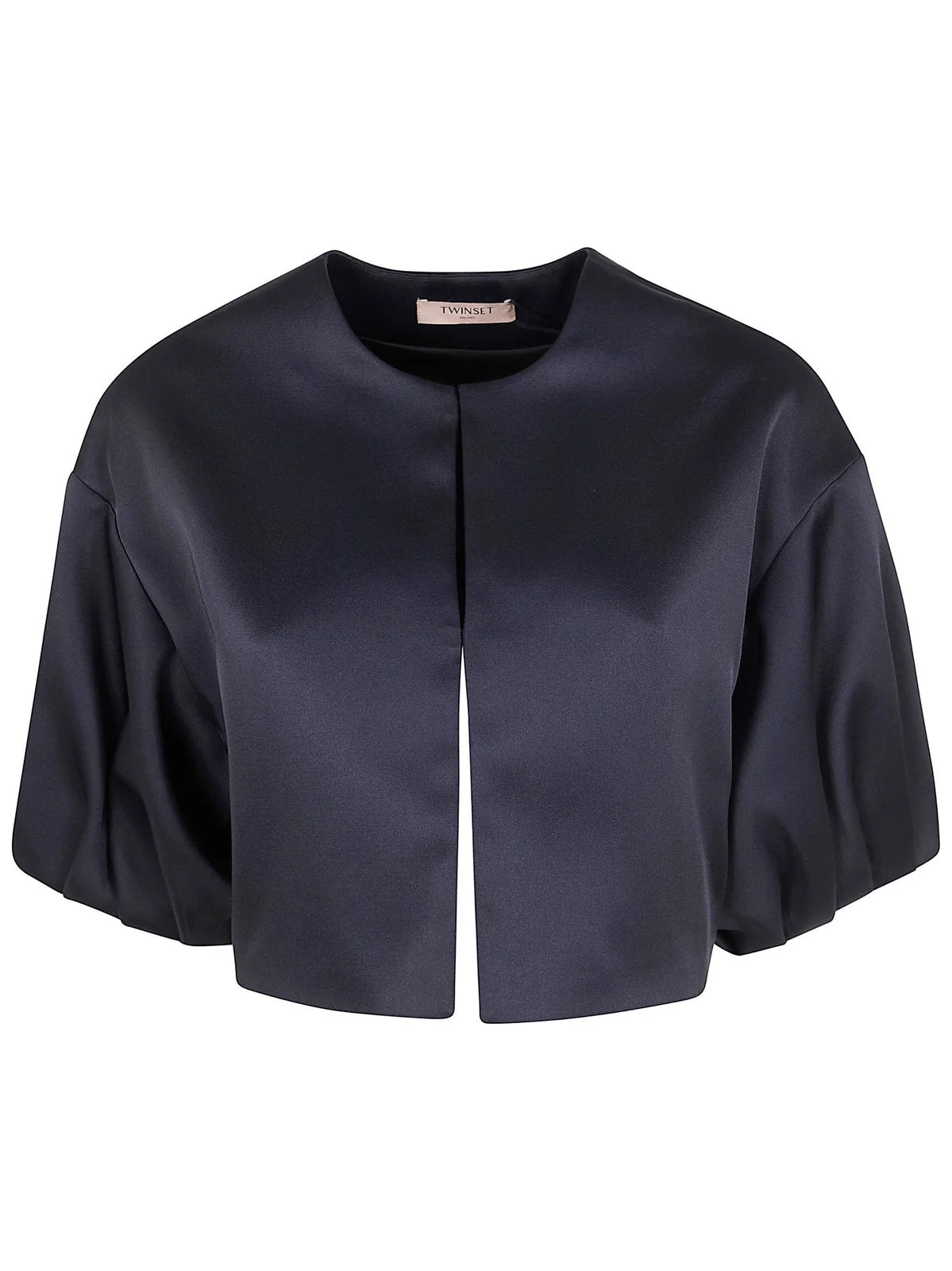 Duchesse cropped jacket with elbow-long balloon sleeves gathered and elasticated at the hem. Round neck, fitted fastening with hooks at the front, lining, straight fit. Perfect for parties and formal occasions.