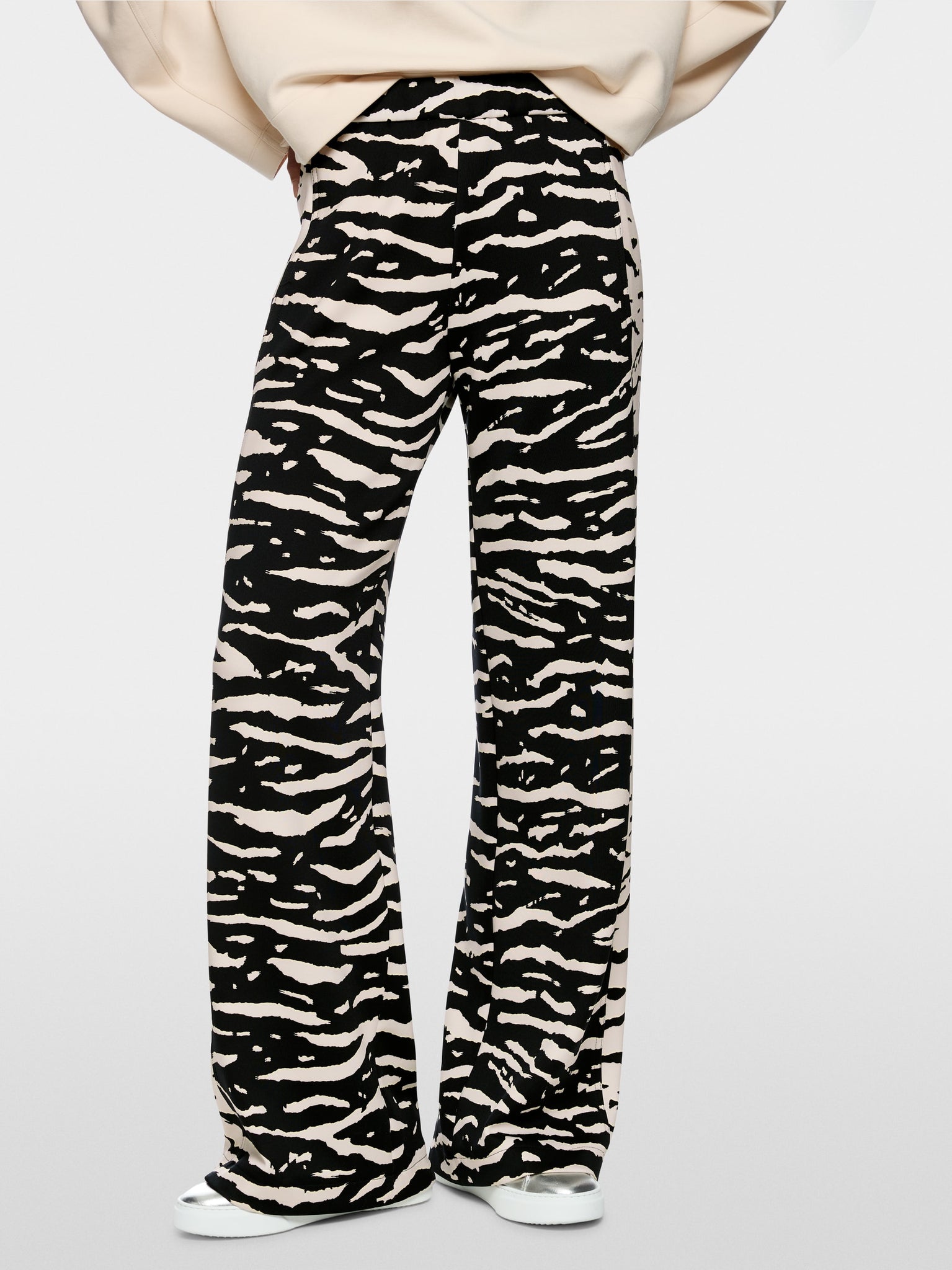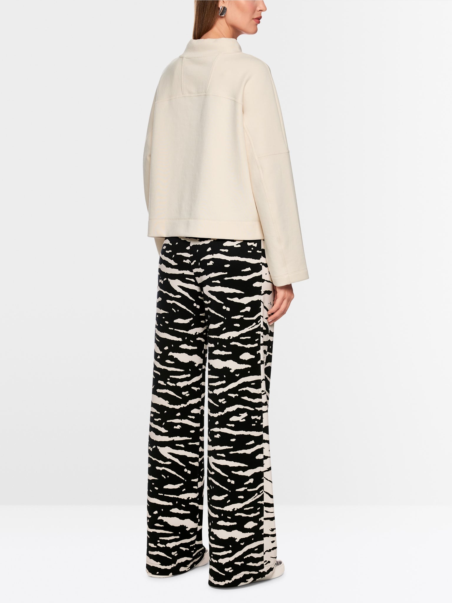 Slip into effortless style with these Marc Cain printed pull-on pants! Featuring a wide, elasticated waistband that hugs you just right, they're your new go-to for laid-back vibes or dressed-up moments. The standout? Soft scuba jersey fabric adorned with a chic animal print that adds personality to any outfit. Practical side pockets keep things functional while you're looking fabulous. Comfort meets fashion in one playful package.