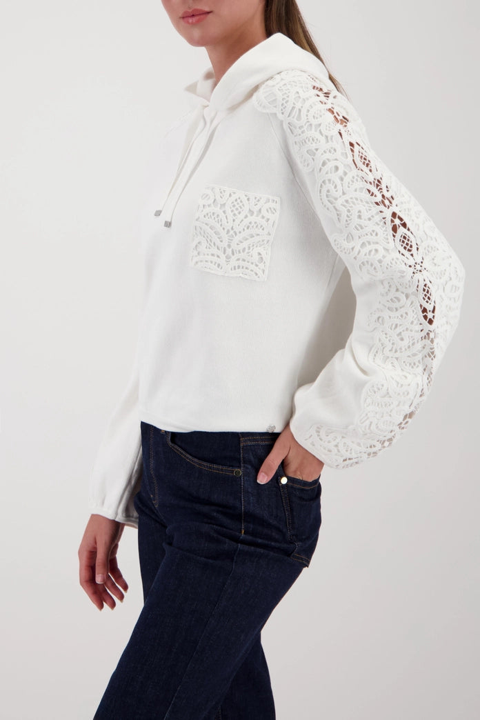Monari Cotton Sweater with Lace Insert